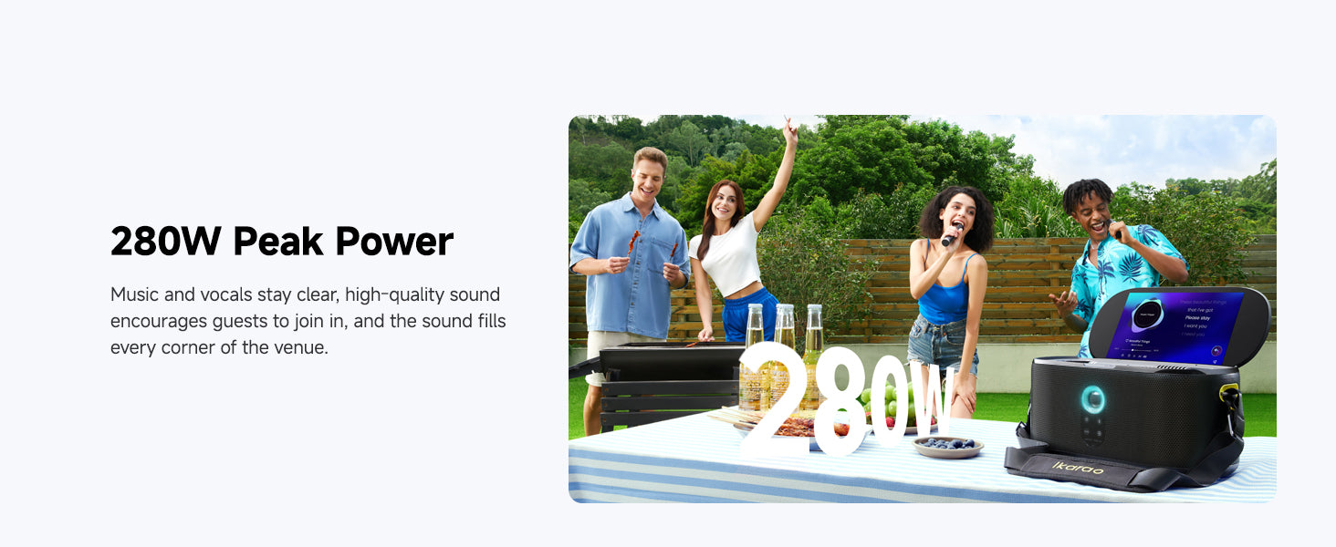 karaoke Machine for Adults, with Lyrics Display, Karaoke System for YouTube, 280W Speaker, Autotune & EQ, Connect to TV, Portable PA System with 2 Wireless Microphones for Home Outdoor Party